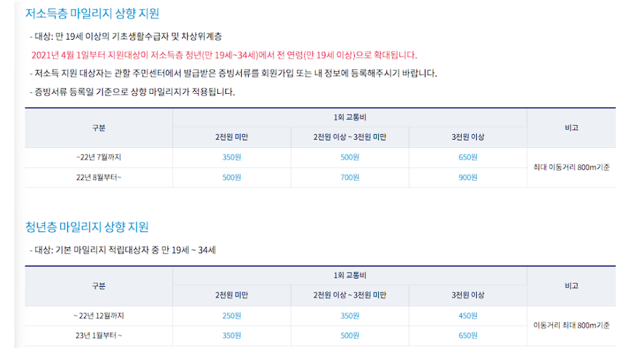 (단, 주민등록상 주소지 정상인 경우, 알뜰교통카드 앱 가입 첫 달은 대중교통 이용 횟수 무관)