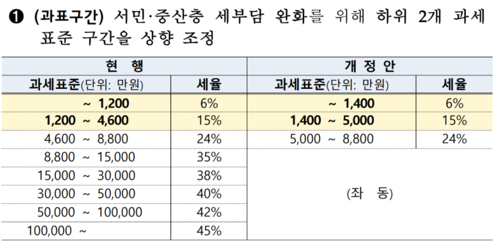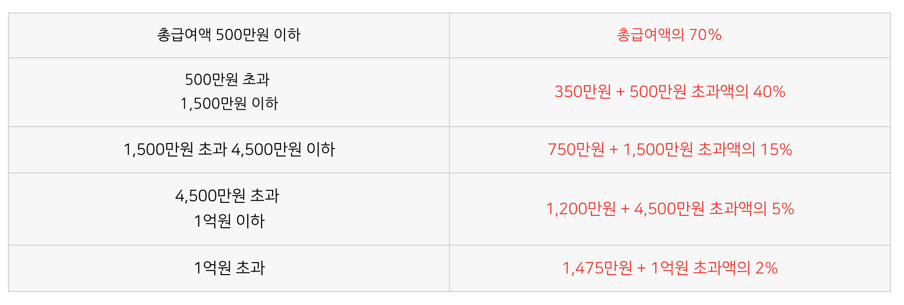 신입 직장인 철수의 연간 총 급여가 3500만 원이고 올해 세금으로 미리 총 800만 원을 냈다.(근로소득세 + 지방세 연간총합) 그리고, 위의 소득공제 항목들을 모두 정리한 금액이 700만 원이라면 3500-700은 2800만 원이 된다. 소득공제 항목을 하나하나 다 찾기가 쉽지 않을 수 있으니 매해 10월-11월 중 국세청홈텍스 사이트에서 연말정산 미리 보기를 들어가면 그간 내가 사용한 자료들을 조회할 수 있으니 미리 숫자를 계산해 볼 수 있다. 위에서 나온 2800만 원이 <과세표준> 금액이 된다. 과세표준은 이미 정해져 있는 것이고 표로 보여주면 다음과 같다.
